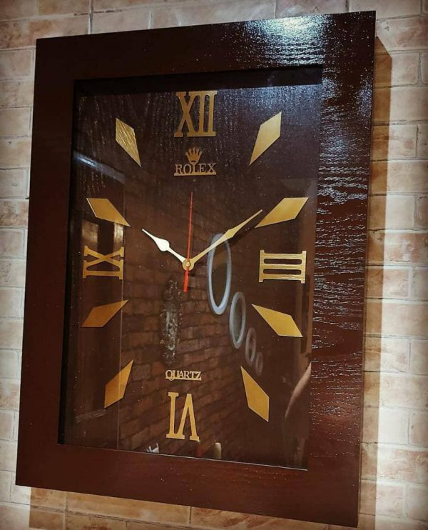 ساعت دیواری رولکس چوبی مستطیل جدید