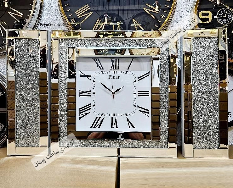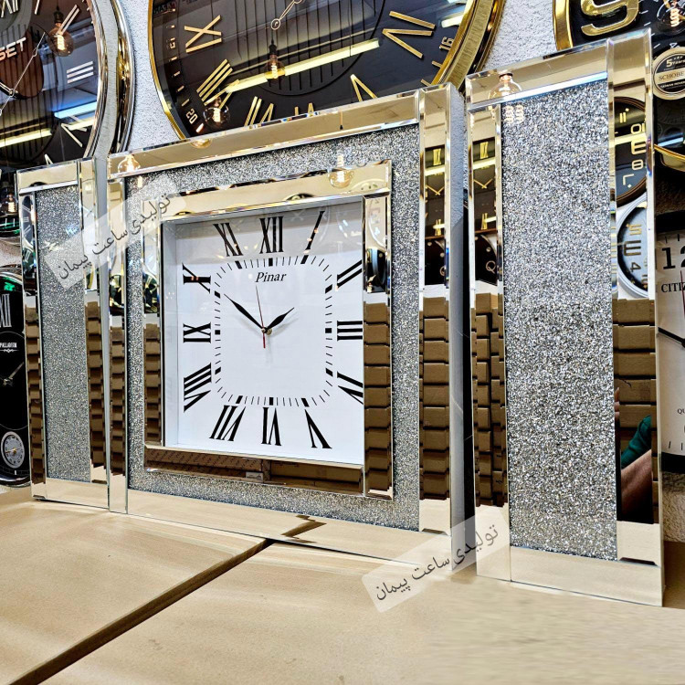 ساعت دیواری آینه ای پینار با 3 سال ضمانت موتور و بی صدا دارای بسته بندی مناسب جهت استفاده در منزل محیط کار