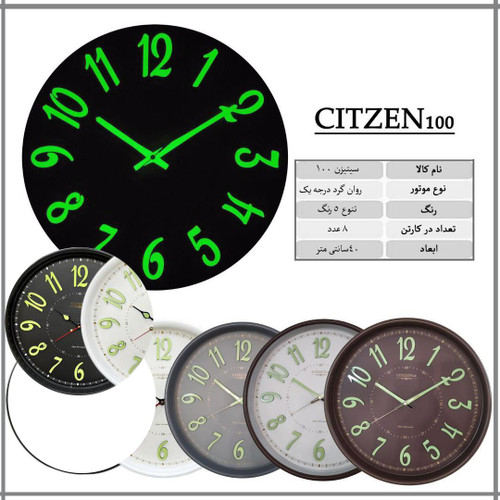 ساعت دیواری مدل سیتیزن شبنما دار کد 100 سایز 40 - رنگ بندی جور۸۹۰٬۰۰۰ 22%